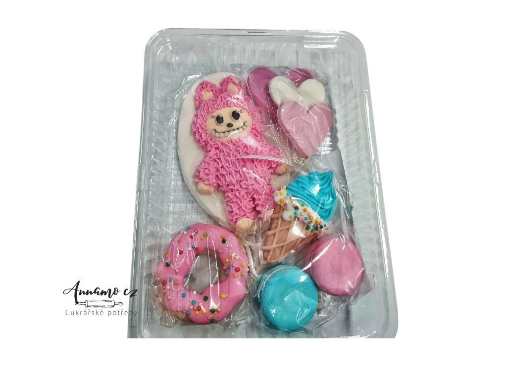 1x zápich Labubu, 3x zápich srdce, 1x zápich zmrzlina 2x makronka, 1x donut
